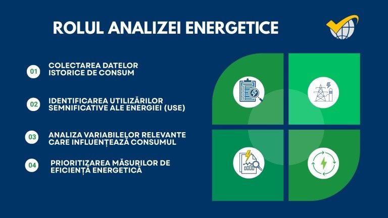 - Analiza: implică evaluarea rezultatelor obținute prin compararea consumului real cu linia de referință stabilită inițial, pentru a valida succesul măsurilor luate.